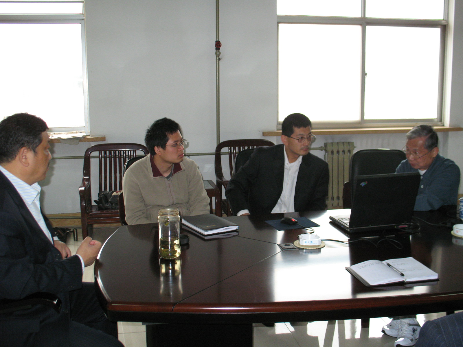 Doctor Jiang Qingzhang was discussing technical problems with engineers of OrientSun